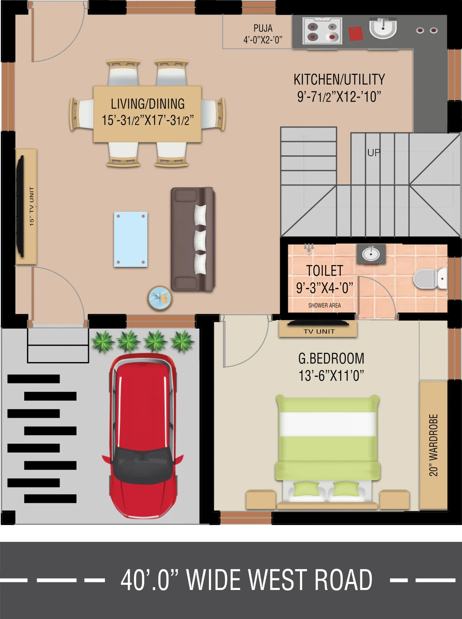 PLOT AREA – 33’x40’ - 146.67 SQYDS
