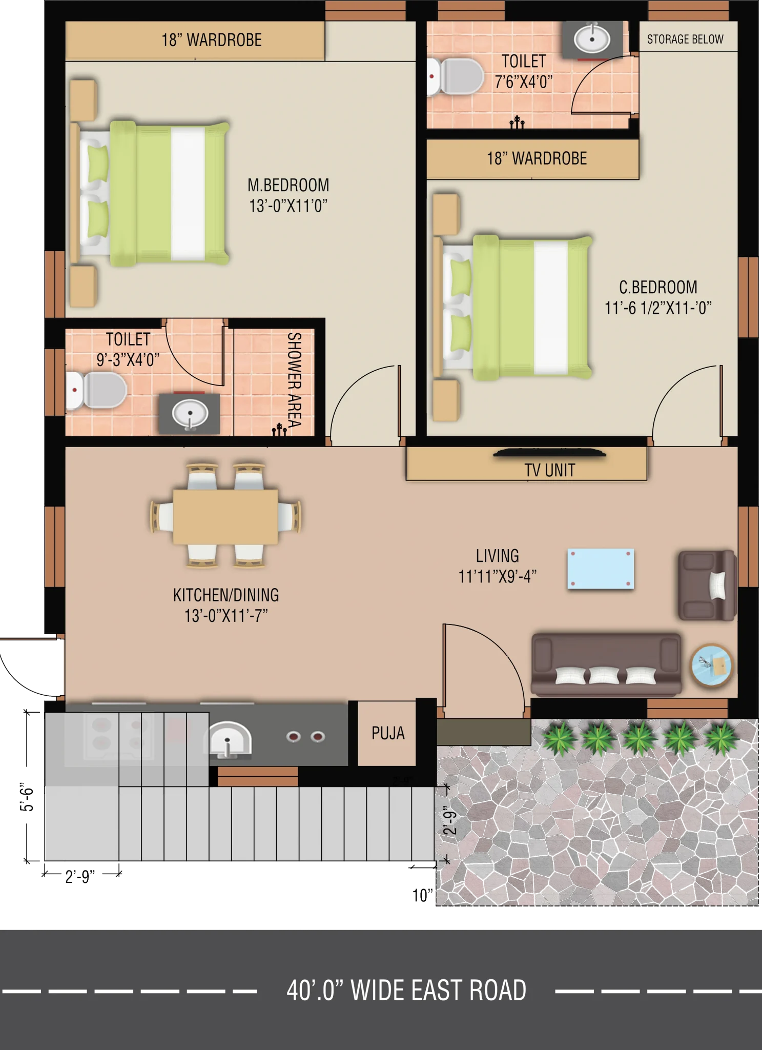 Our thoughtfully designed homes are crafted with precision, following Vastu principles for harmony and positivity. These cozy 2 BHK homes, ranging from 500 to 1250 sqft, are ideal for your small and joyful family. Each home includes a dedicated parking space for your convenience. To ensure your peace of mind, the entire community is equipped with CCTV surveillance and a single, guarded entry point for enhanced security.